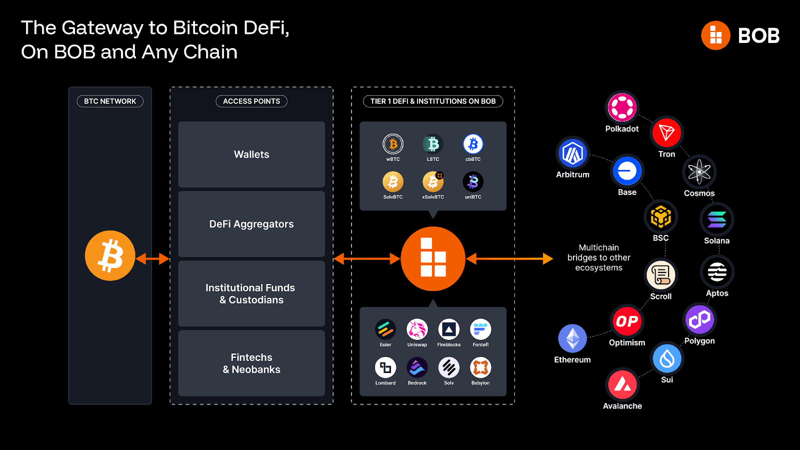 - BOB is the secure, multichain gateway that brings Bitcoin into the next generation of finance.