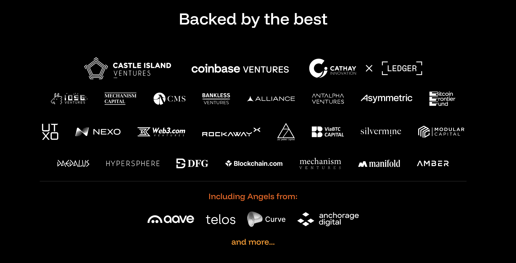 The most recent strategic round was announced in August this year. It saw many existing investors double down on their commitment, including Castle Island Ventures (which led the original seed round), Ledger Cathay Capital, RockawayX, Asymmetric, Hypersphere, IOSG Ventures, Bankless Ventures, Sigil/Zeeprime, CMS & Daedalus. New strategic partners Amber Group, Sats Ventures and Nathan McCauley (CEO of Anchorage Digital) joined the investor base, complementing an earlier angel round.