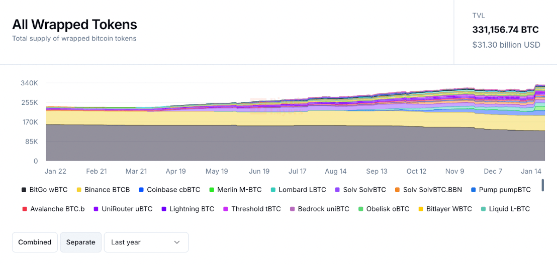 Since then, we have seen a 40% increase to 331k BTC, including a much wider variety of wrapped assets and LSTs.