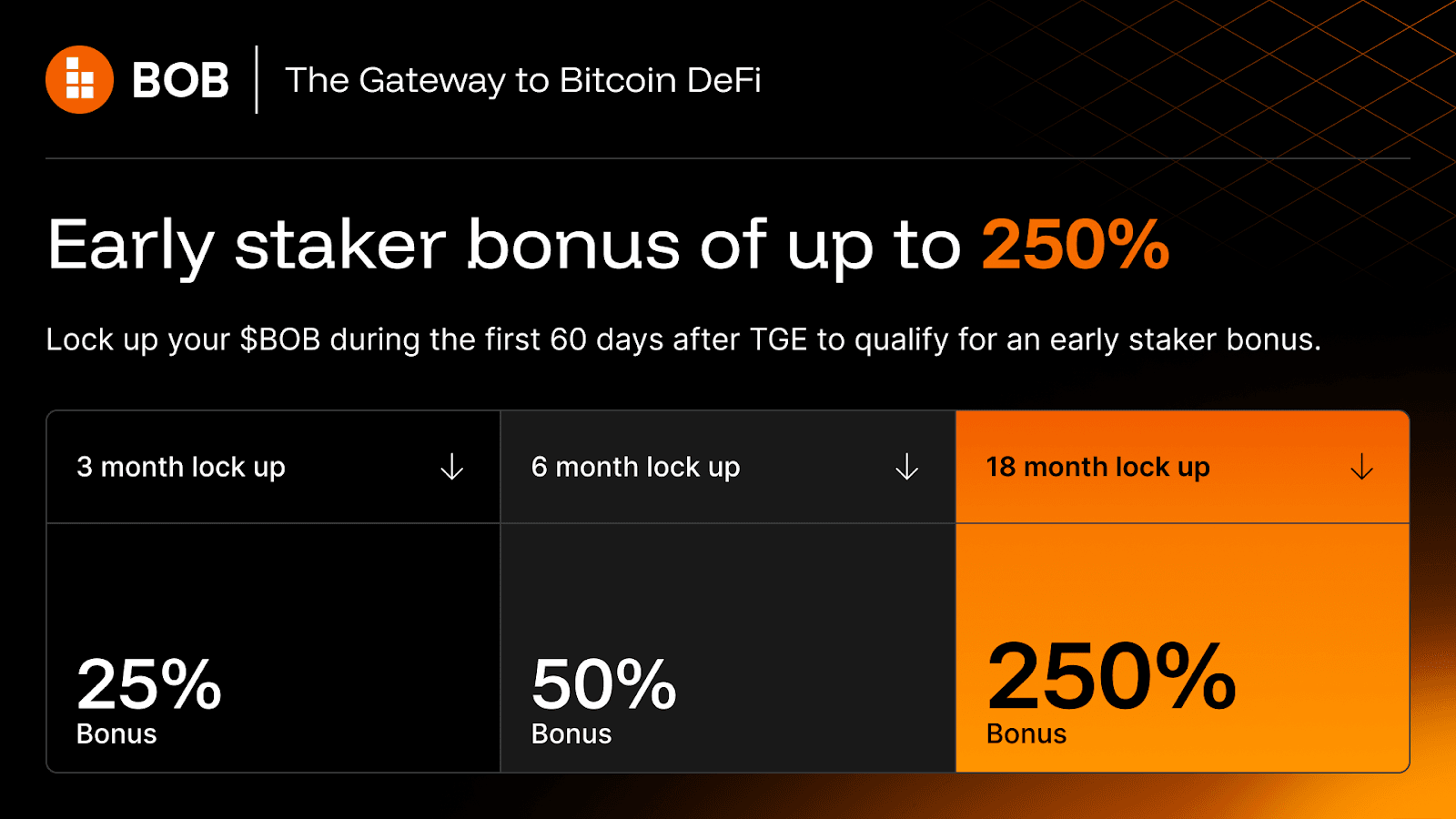 If you have questions regarding the BOB token launch, we’ve compiled a digestible FAQ covering token distribution, airdrop eligibility, staking details, tokenomics, and more.